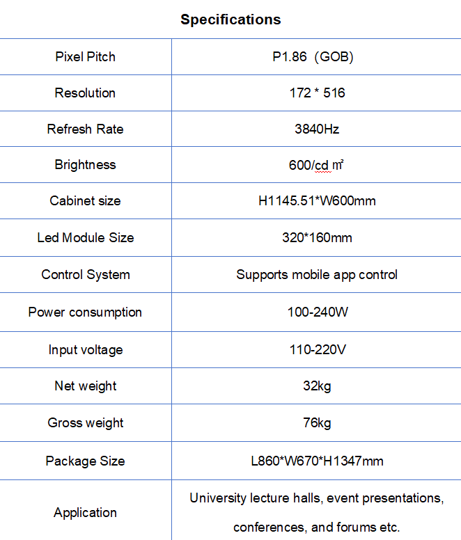 Lecture led screen Features: